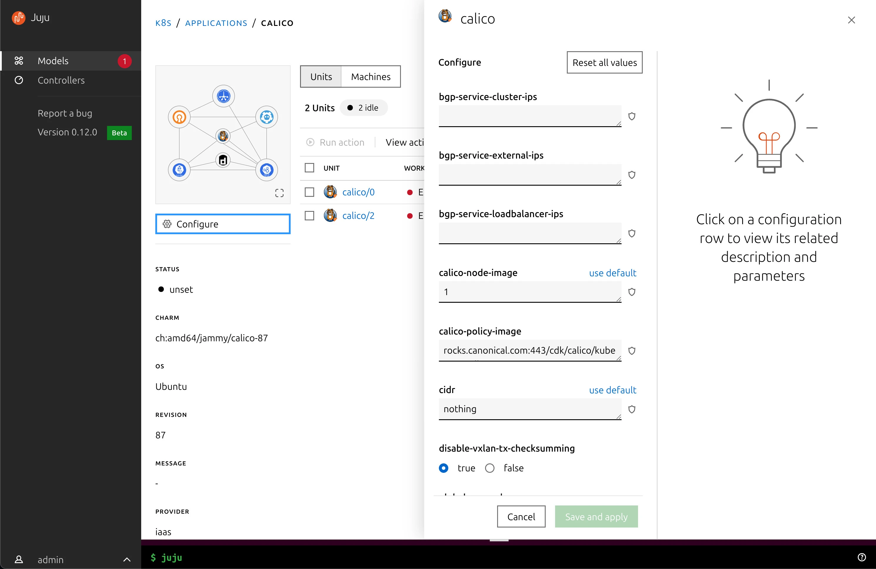 The unit view scopes your list of units to the model and application you are inspecting. This view will give fine-grained information about the status of each unit and information on this public availability.