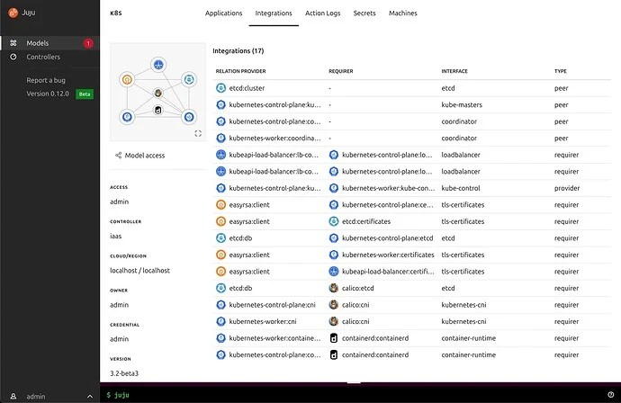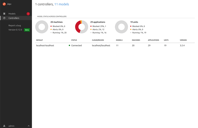 The Juju Dashboard aims to expose Juju environments, providing at-scale management, status and collaboration features not found in the Juju CLI. It is intended to supplement the CLI experience with aggregate views and at a glance health checks. In particular, it provides a quick way to view details for all the entities in your Juju environment (models, controllers, etc.), and in places also provides functionality related to the ongoing maintenance of your estate.