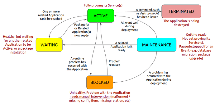 , which are set by Juju, the workload status is generally speaking set by the charm. As such, its semantics is ultimately up to the charm author. The meanings listed below represent just the ideal case, if the charm author has followed the best practice guidelines.